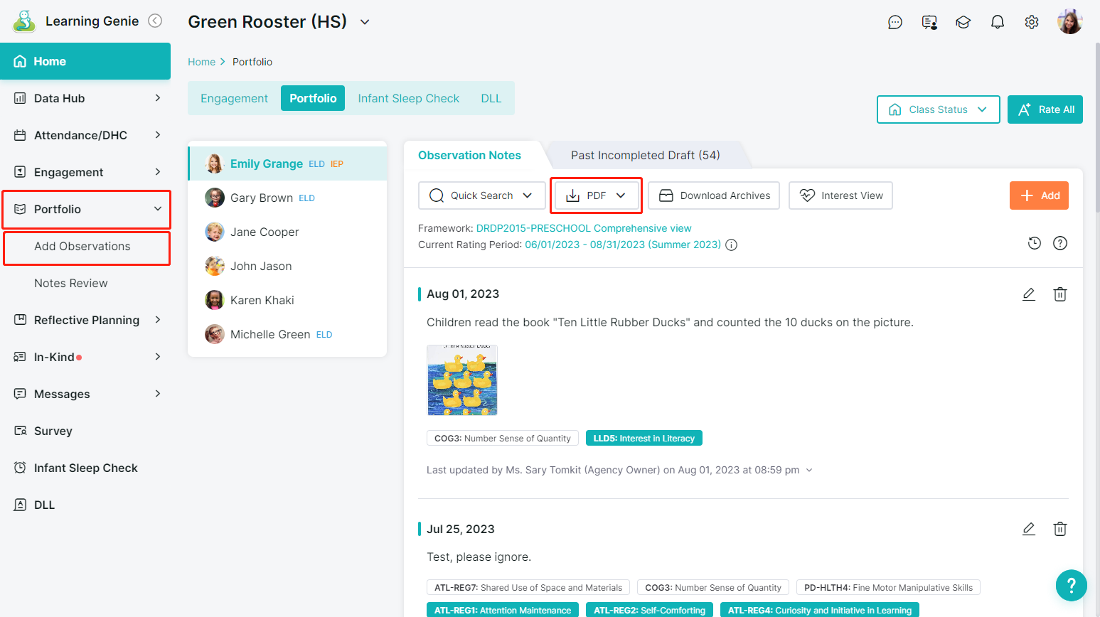 You can easily generate and print a PDF version of a child's portfolio right from the Learning Genie web portal. Follow these steps: