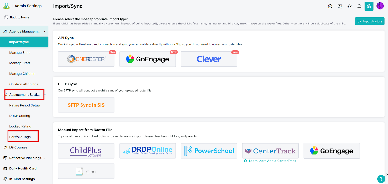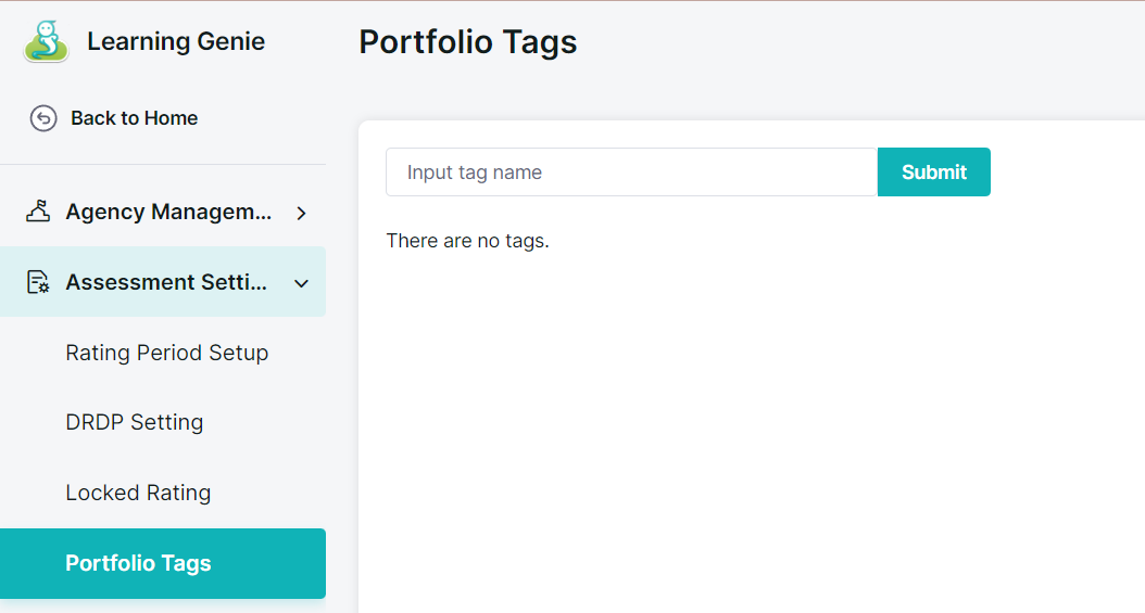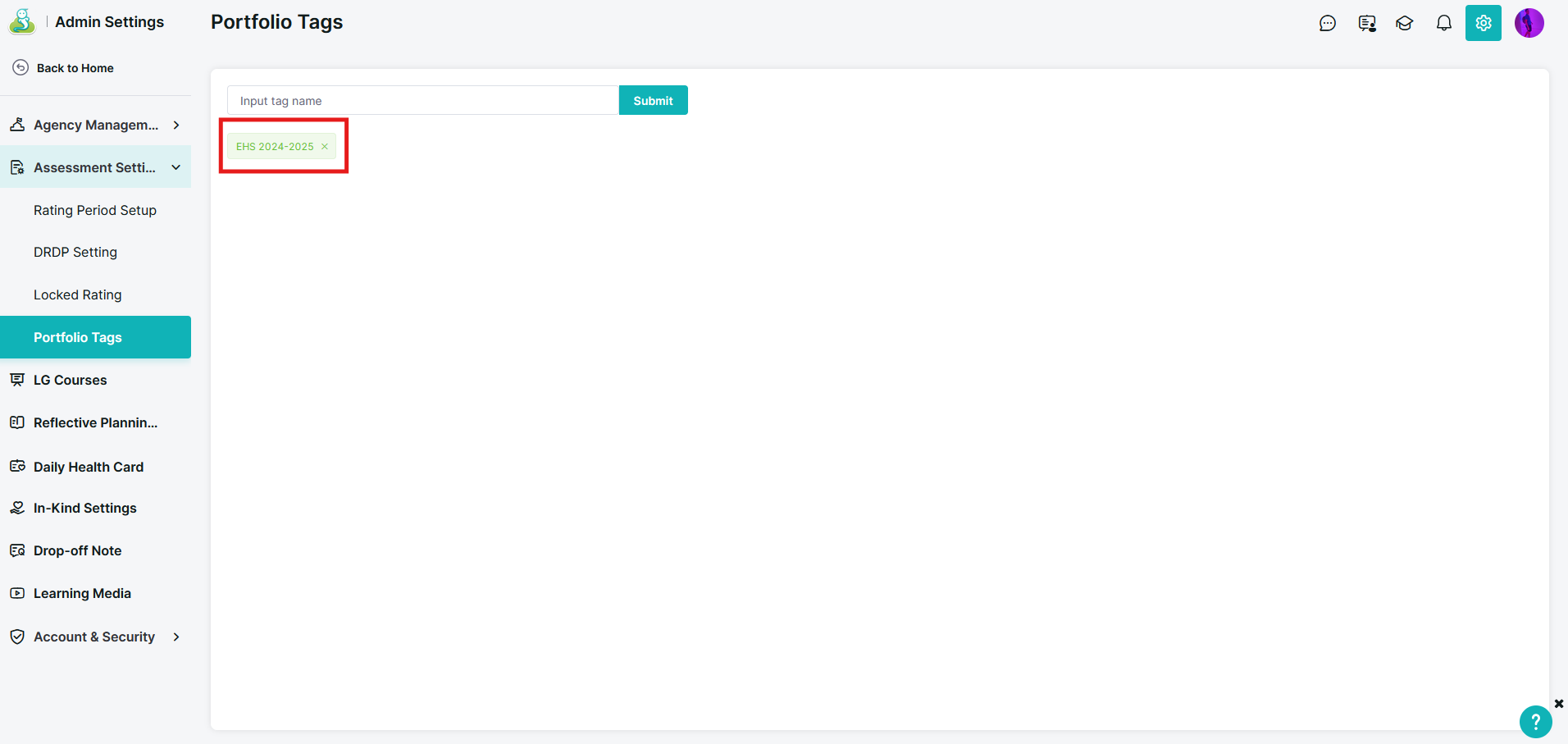 - Log in and go to Admin Settings → Assessment Settings → Portfolio Tags.