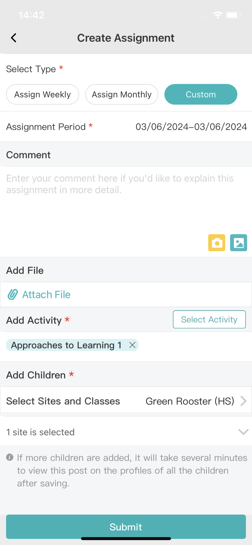 - At last, click the “Submit” button to send this assignment to families to complete.